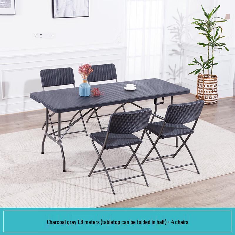ZISIZ Outdoor Foldable Rattan Craft Table and Chairs Set