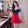 Nightclub Sexy Lace Splicing Perspective Suspender Dress Design Sense Temperament Waist Thin Big Swing Skirt