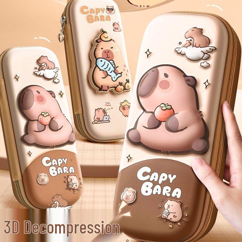 Capybara 3D Cartoon Pencil Case: Waterproof, Three-Layer Design for Primary School Students