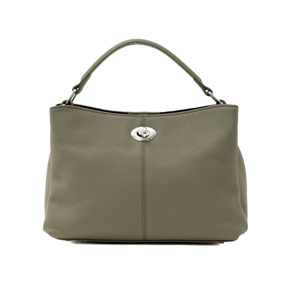 This cute handbag features a rounded shape. Made with plenty of high-quality shrunk leather, it exudes elegance. The storage space is divided into three compartments, with a zippered central compartment so you don't have to worry about contents falling out. It has a sturdy gusset, making it the perfect size for everyday use, with plenty of room to store your essentials. The included shoulder strap allows you to wear it over your shoulder or across your body. This versatile bag can be used for everyday use, work, formal occasions, and ceremonies.