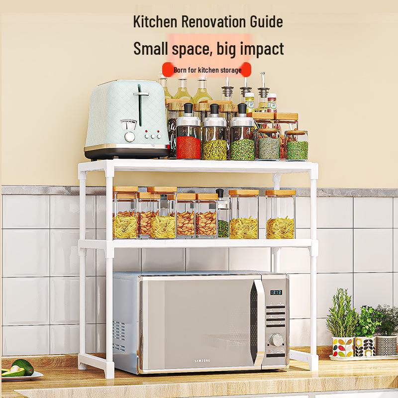 Popular Double Layer Microwave Oven Rack – Simple, Multi-Purpose Kitchen Storage with Seasoning Box Organizer
