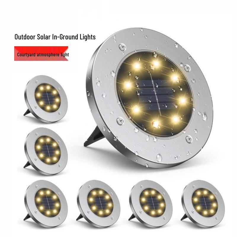Stainless Steel Solar Ground Light, 8 LED, IP65 Waterproof for Garden and Courtyard