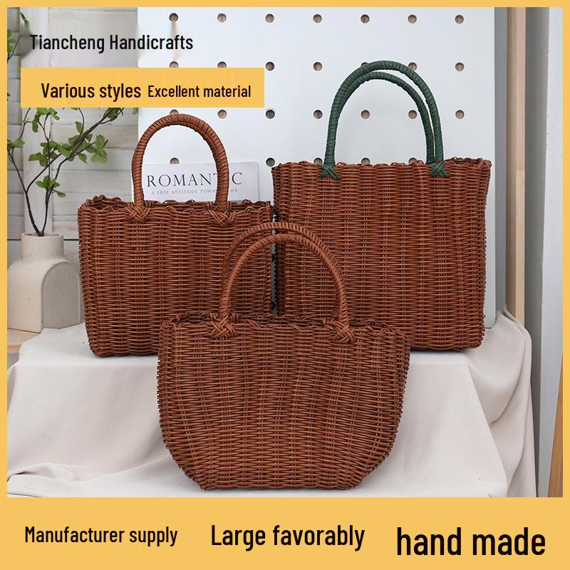 Wicker Handheld Lightweight Basket: Versatile Vegetable Shopping, Fashion Tote, Picnic & Bathroom Shower Use