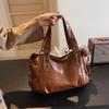 Retro European & American Large PU Leather Tote: Solid Color, Soft, Versatile, and Casual Shoulder Bag for Commute.