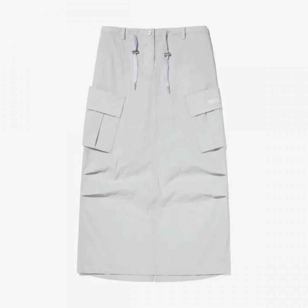 The Fila Crinkle Midi Cargo Skirt FS2SKG2171FPGY is made of a nylon and spandex blend, providing added stretch for a comfortable fit. The mermaid fit design features a slightly flared hem, allowing for harmonious coordination with various tops. It is available in the color Silver.