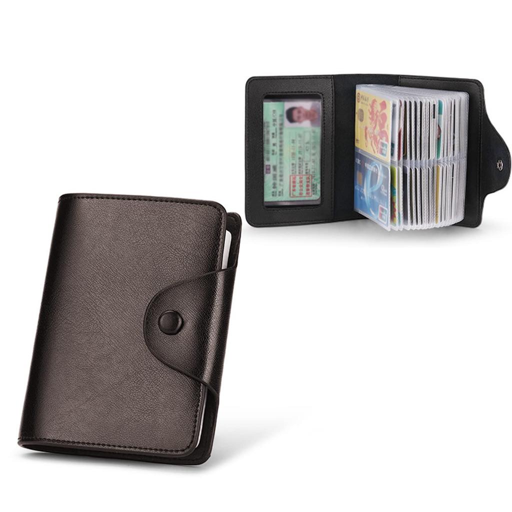 Ganve Men's Large Capacity Card Case, Genuine Leather, Business Card Holder, Women's, Point Card Holder, Simple, Bifold, Holds 40 Cards
