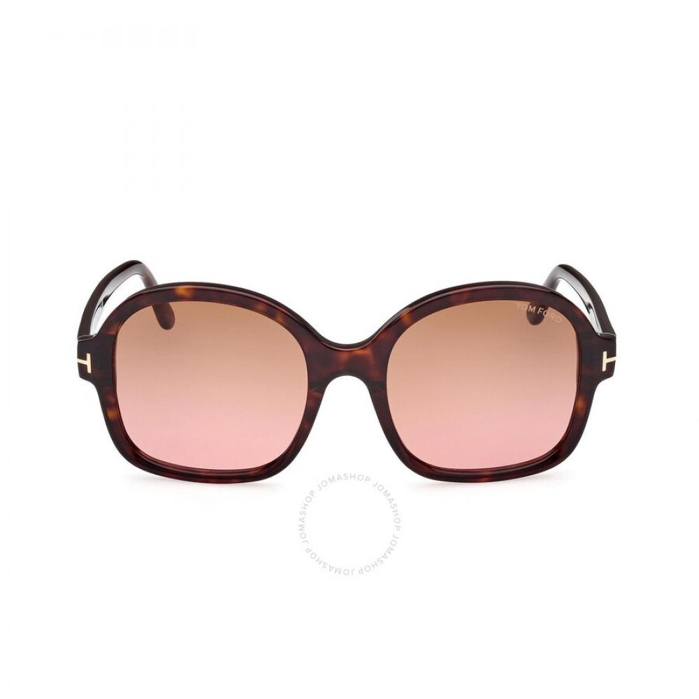 The Tom Ford Hanley Brown Butterfly Ladies Sunglasses FT1034 52F 57 features a beautiful butterfly shape with a refined color combination. This model offers 100% UV protection to safeguard your eyes. The frame is made of acetate, which is lightweight yet durable, and the color is shiny dark havana, providing a smooth line and luxurious feel.