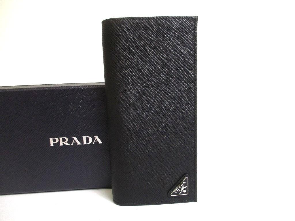 Product : PRADA Saffiano Triangle Black Leather Bifold Long Flap Wallet #b088