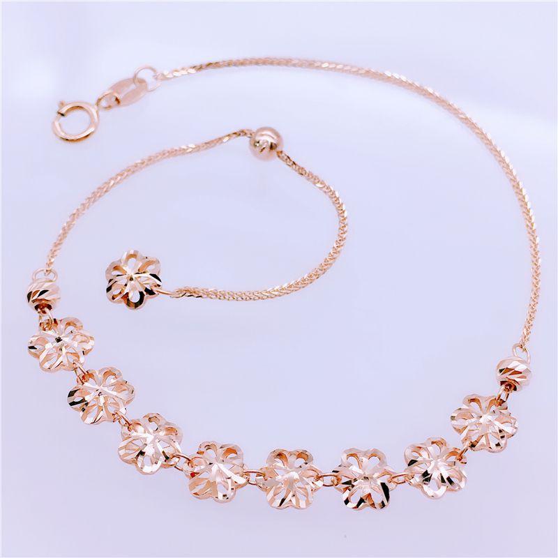 Rose-Plated Pure 585 Purple Gold Bracelet For Women, Japan And Korea Hollowed-Out Shiny Gold Flower Jewelry