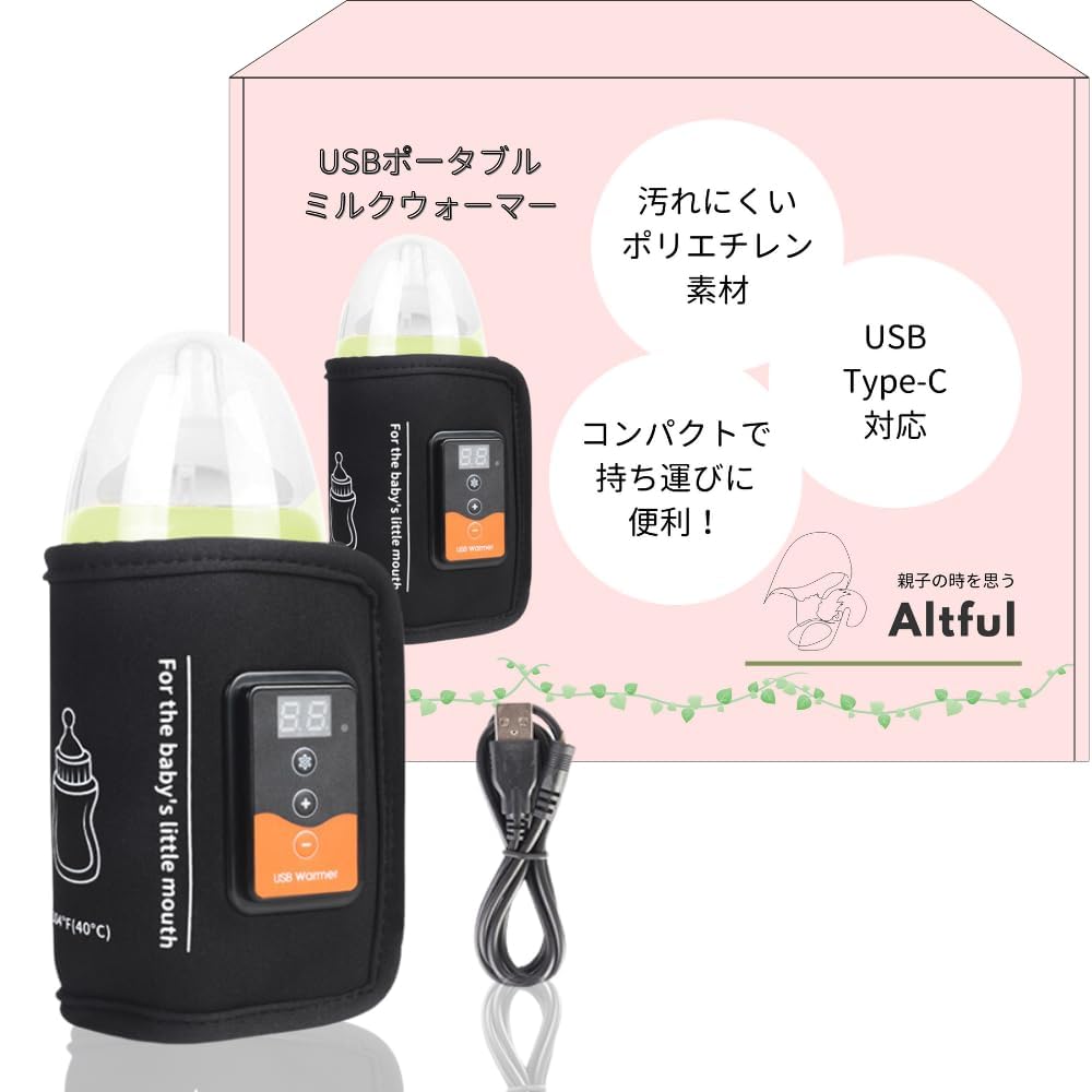 Altful USB Milk Warmer, "Supervised by a Midwife!" USB Type-C Compatible, Portable, Compatible with Various Baby Bottles, Includes Japanese Instructio