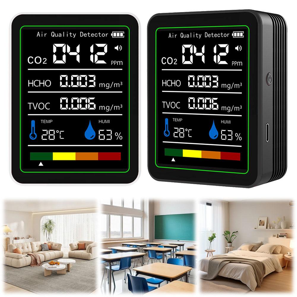 5 In 1 Carbon Dioxide Detector Digital Display Temperature Humidity Monitor USB Rechargeable for Air Quality Detecting