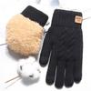 Full Finger Gloves Double Layer Mittens Knitted Gloves Leather Label Gloves For Cold Weather Activities Touchscreen Compatible
