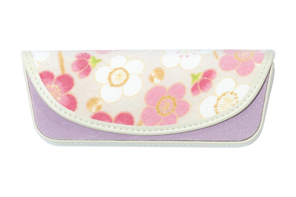 (1207-5) Uni Seni Futago Chirimen Japanese Pattern Eyeglass Case [Semi-Hard] [Modern Plum BlossomPink]
