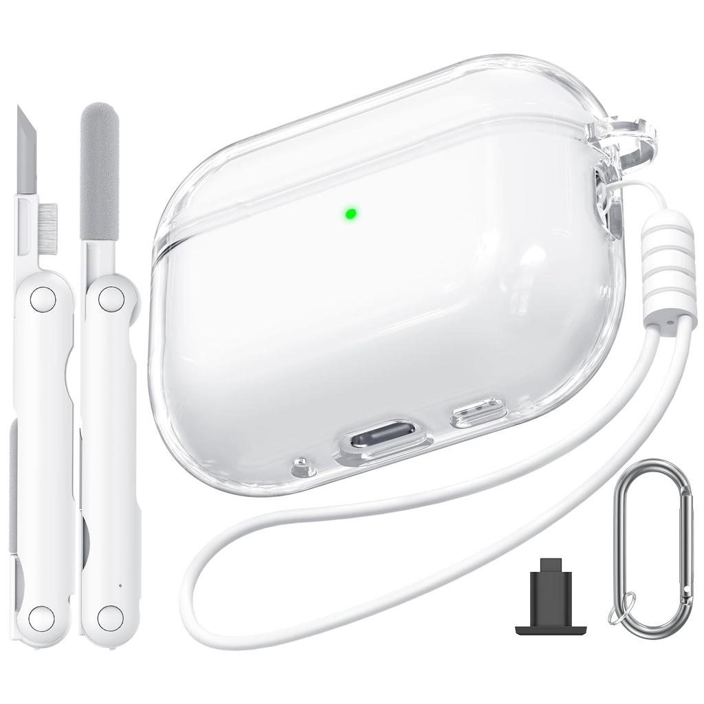 Joremx AirPods Pro 3 Case, Clear (2025), TPU Material/Lightweight/Shockproof/Loss Prevention/Wireless Charging Compatible, Includes Silica Gel Rope, Carabiner, and Cleaning Pen - White