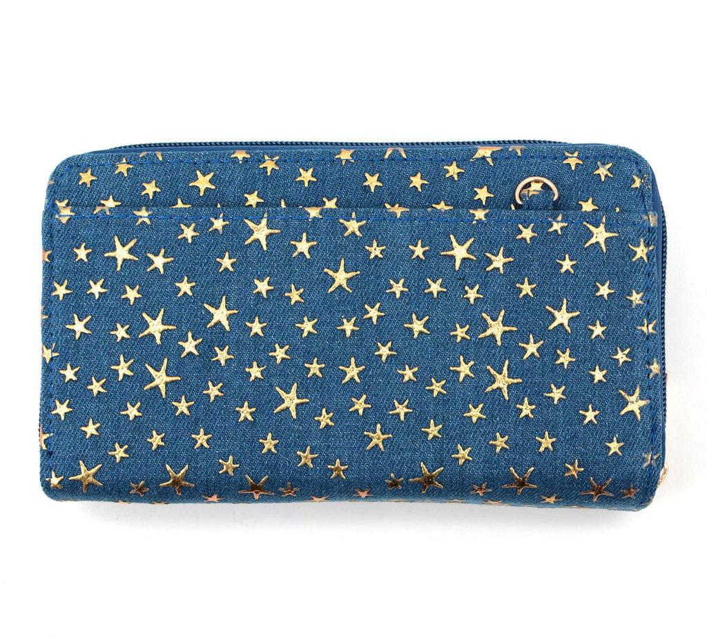 LuLu & Berry Women's Double Zipper Long Wallet In D Denim Star Distressed Blue