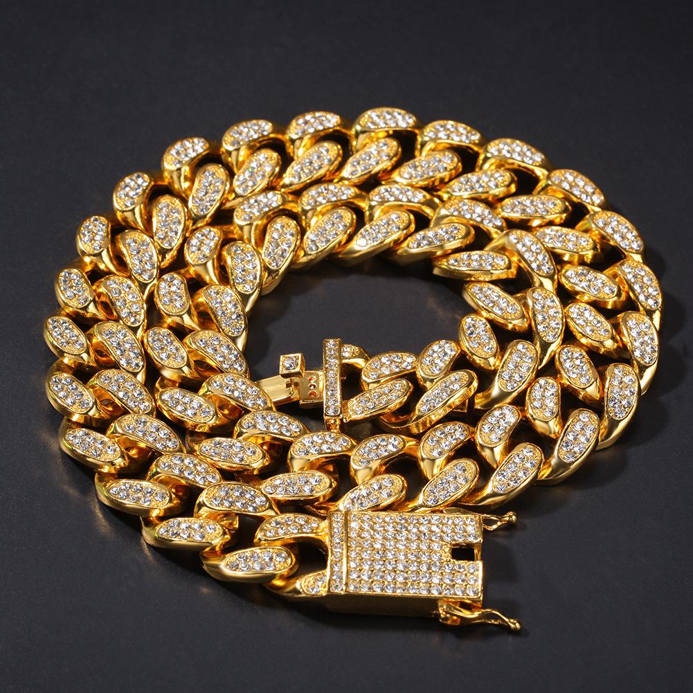 20Mm Full Diamond Men's Big Gold Chain Domineering Exaggerated Miami Chain Fashion Trend Jewelry Necklace Accessories