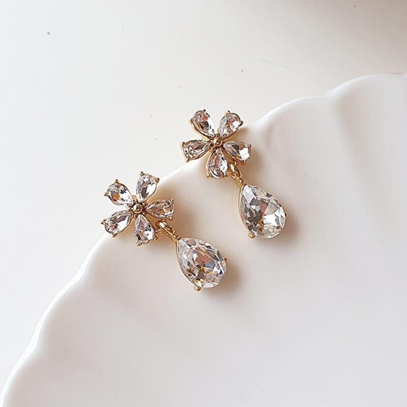 Grimel Water Drop Drop Earrings Flower Cubic Women's Slit