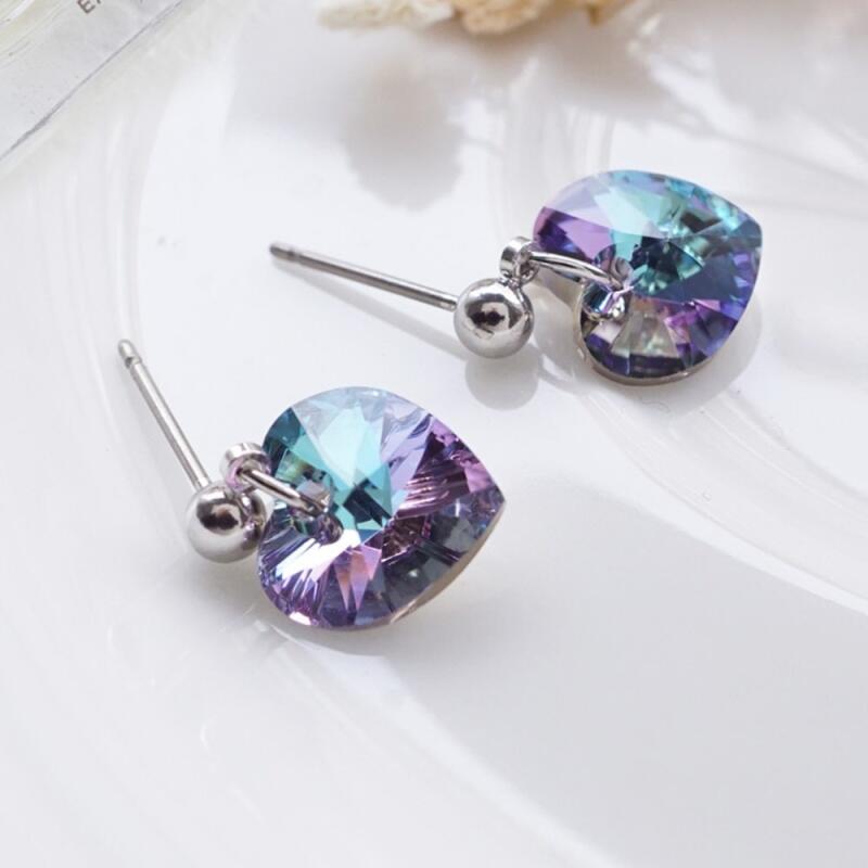 Bithees Heart Shape Mixed Crystal Mini Earrings for Women's Everyday Wear