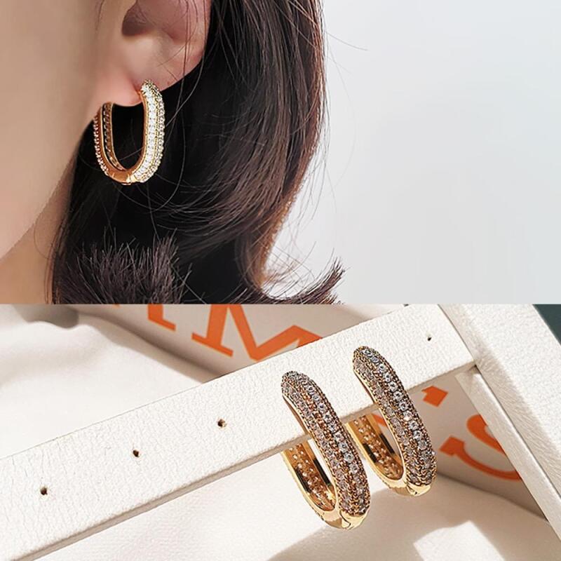 Women's Luxury Square Cubic Pave Ring Earrings