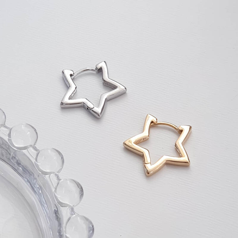 Simple Daily Line Star One-Touch Ring Nickel-Free Earrings (1 Pair)