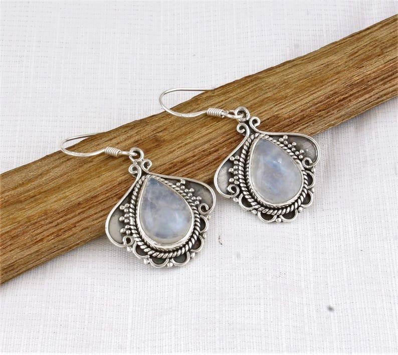 Solid 925 Sterling Silver Moonstone Gemstone Designer Earrings Handmade Jewelry Boho Earrings Gift For Her