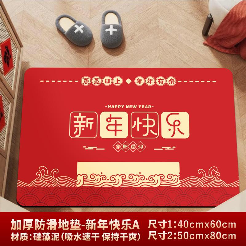 New Year'S Decorative Door Mats Chinese-Style Diatom Mud Bathroom Non-Slip Mats, Bathroom Door Absorbent Floor Mats