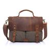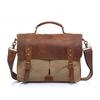 Luxury Briefcase Shoulder Crossbody Military Canvas + Genuine Leather Messenger Patchwork School Bag