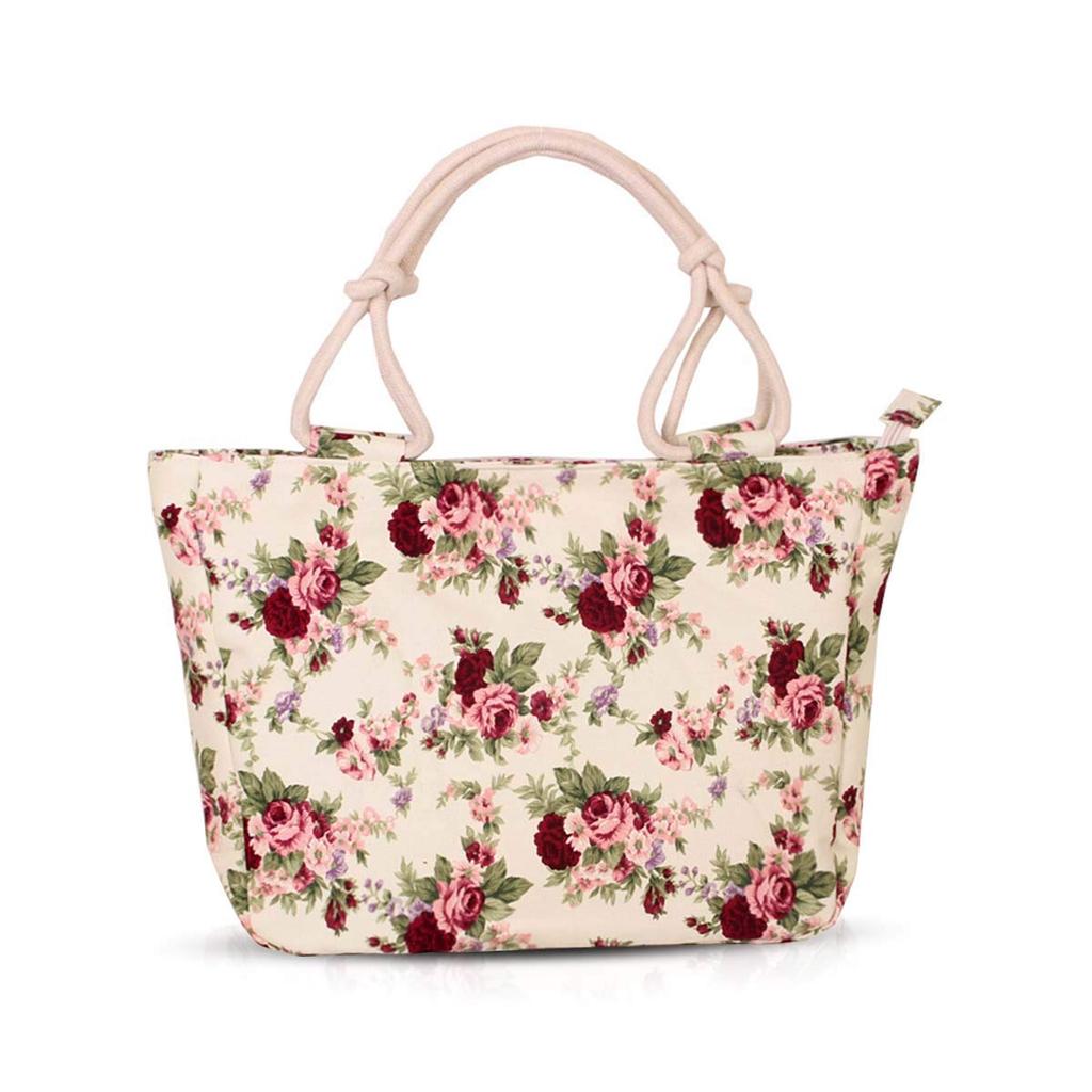 NICOLE & DORIS Canvas Tote Bag for Women, Cute Floral Print, Lightweight, Large Capacity, A4 Size, Water-Repellent, Standing, Shoulder Bag, Diaper