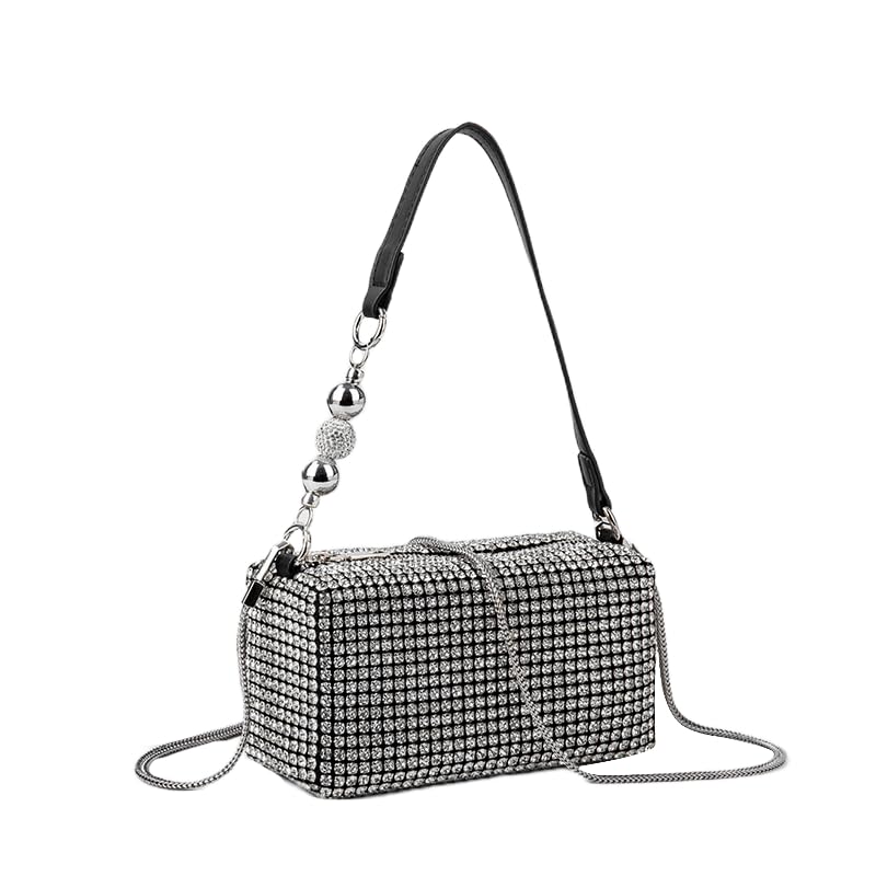 OIUYUE Rhinestone Mini Shoulder Bag, Women's Pochette, Sparkly Handbag, Shoulder Bag with Chain, Korean Style, Casual, Crossbody Bag, 2-Way (Free