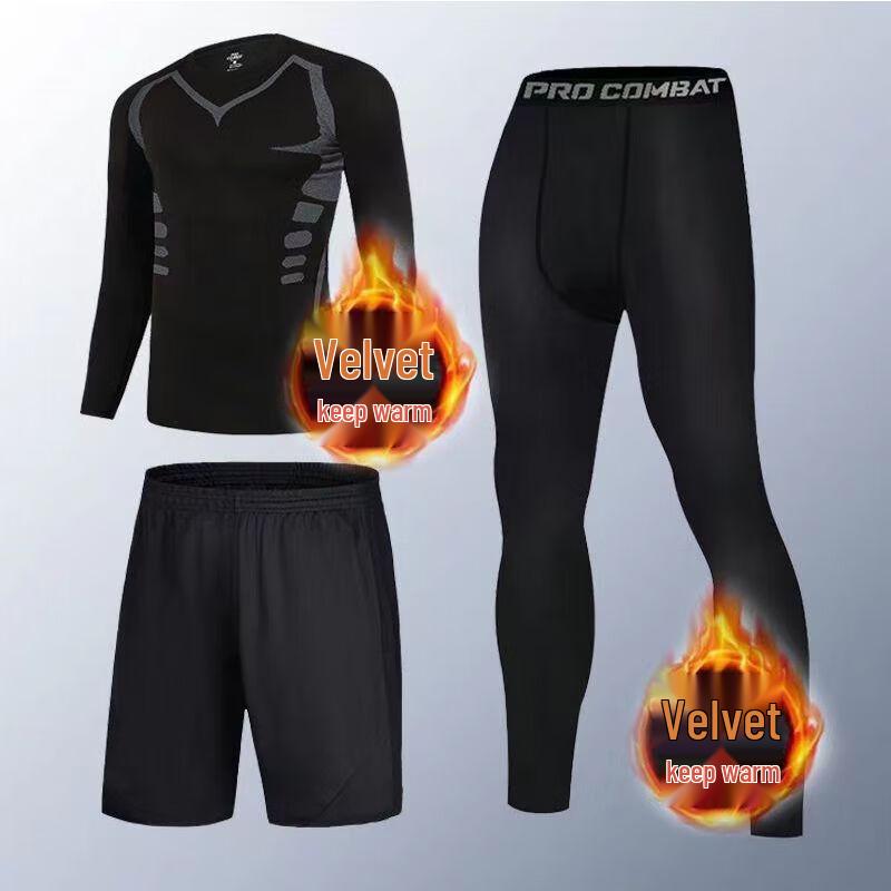WEZHO Men's Winter Plush-Lined Quick-Dry Compression Fitness Running Set