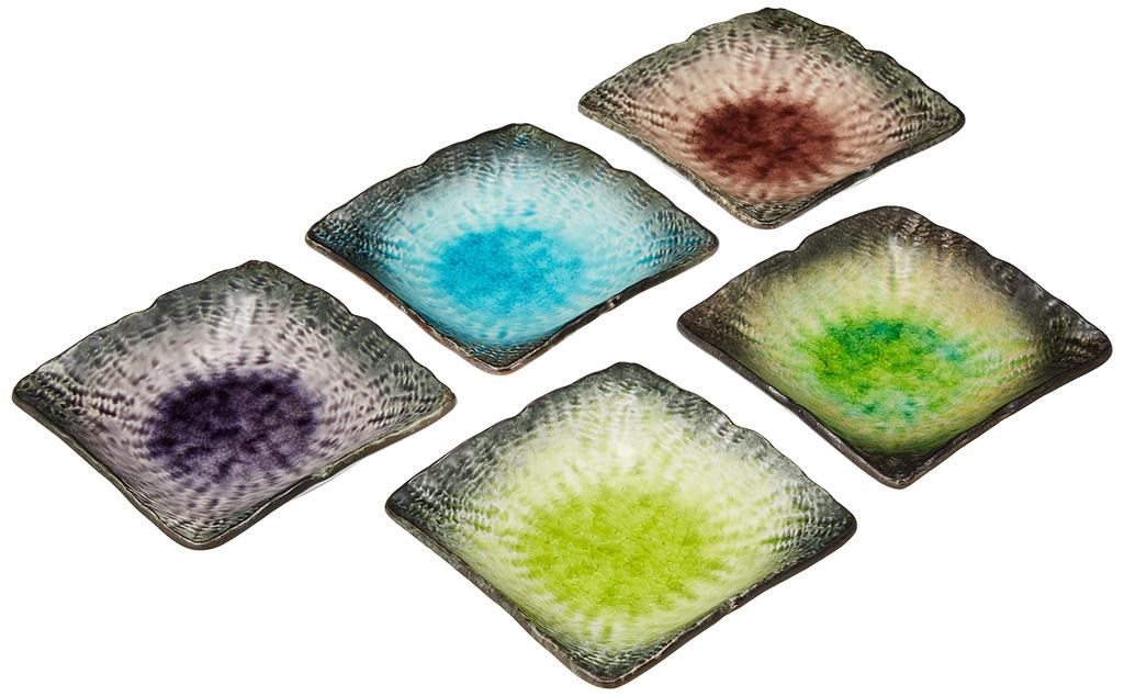 Utsuwa Roan Mino Ware Yamasaku Kiln Dinnerware 5 Small 11cm Mesh 5 and Made In "Colorful Five-Color" Set, Plates, Plates, Approx. Diameter, Square,