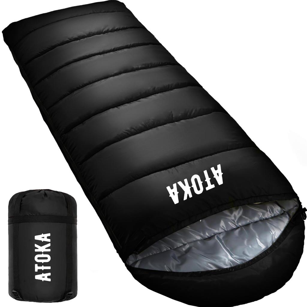 [Ultra-High-Performance Waterproof Fabric & Extremely Durable] The outer fabric is made of highly waterproof polyester, providing excellent waterproofing and water-repellent properties. Even if you encounter light rain or fog outdoors, you'll stay dry for a while. [Increased Warmth & Carefully Designed] The sleeping bag is filled with hollow fiber cotton, providing excellent heat retention and preventing outside temperatures from escaping, allowing you to sleep comfortably. The hat has elastic hand straps that allow you to close the head and collar to keep out the cold. [Excellent Feel] The sleeping bag's inner fabric is made of a soft fabric that feels amazing against the skin, the same material used in mattresses and other bedding, making it soft and comfortable.