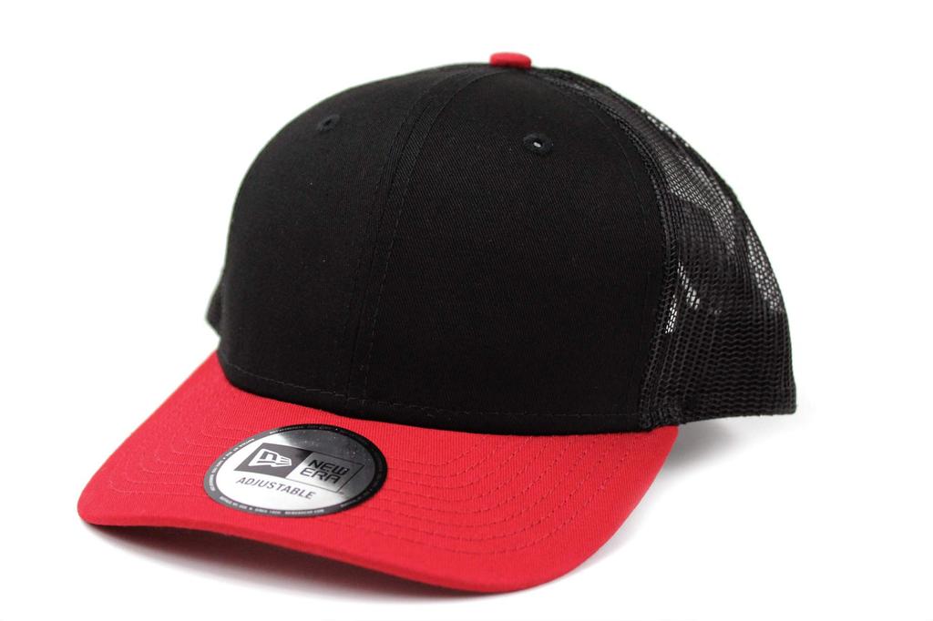 New Era Trucker Cap Low Profile Snapback In Black/Scarlet