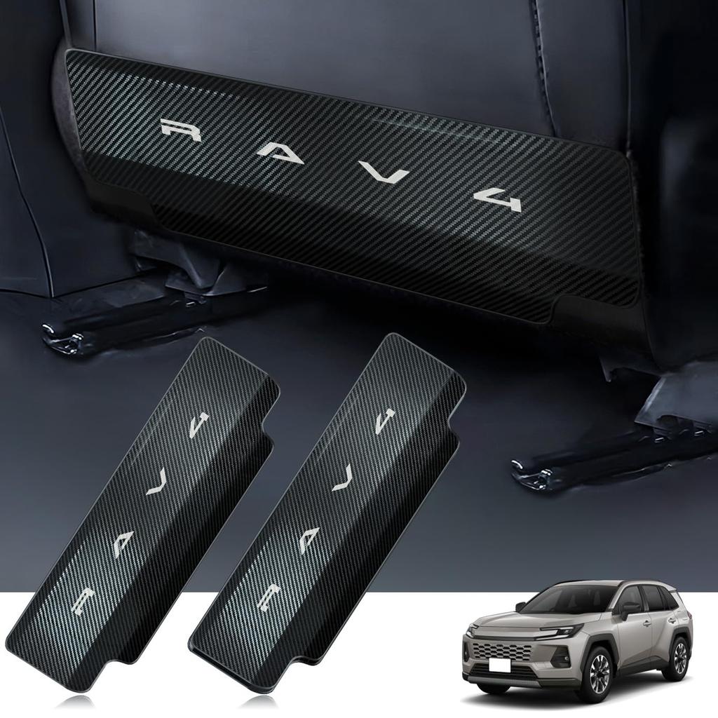 [Compatible Vehicles] Compatible with all grades of the new RAV4 XA60 series (December 2025 onwards). *Please note: Compatibility may vary depending on the model year, grade, and options. Material: Stainless steel. Set includes: 2 kick guards. Fits driver and passenger seats. Color: Black, carbon fiber. Features a laser logo that shows quality and individuality. The unique design makes your vehicle's interior more recognizable and showcases your unique taste.