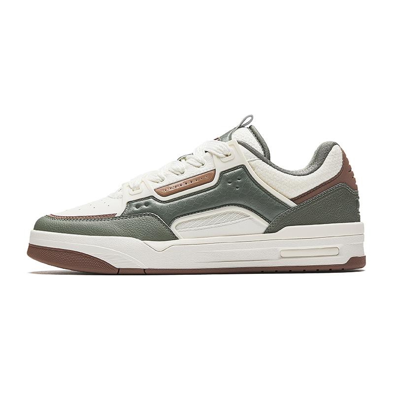 Anta Synthetic Leather Low Top Skateboard Shoes Men's Ivory White/Plain Green/Eagle Brown 112618043-3