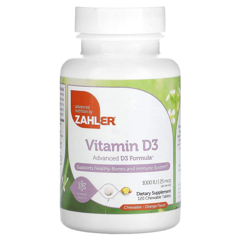 Zahler, Vitamin D3, Advanced D3 Formula, Orange, 25 Mcg (1,000 IU), 120 Chewable Tablets