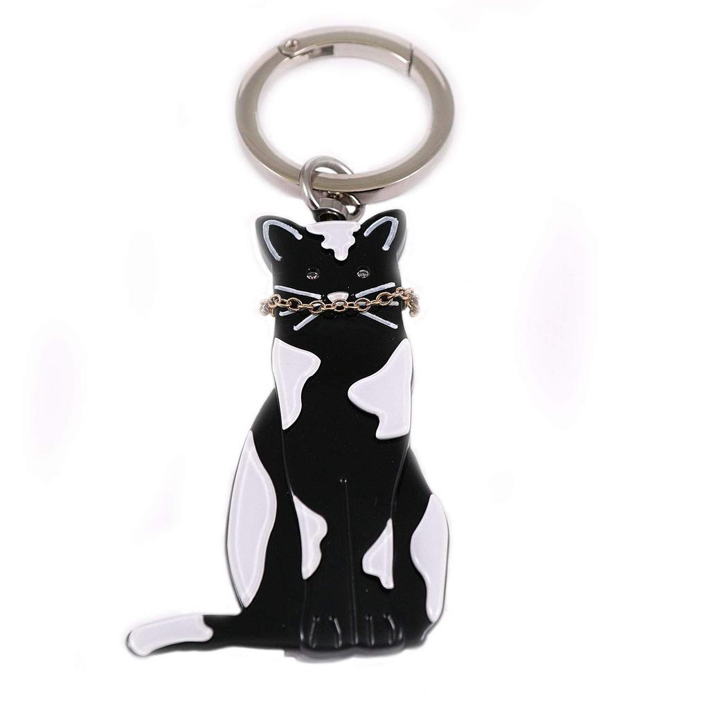 Laporte Bag Charm Keychain, Sitting Cat, Acrylic, Cute, Plastic, Lightweight, Stylish, Pop, Colorful, Black and White