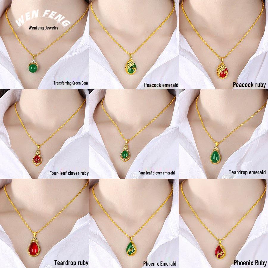 Ethnic Peacock Necklace: Brass Gold-Plated Double Wave with Ruby & Emerald Inlay - Perfect Gift for Mom