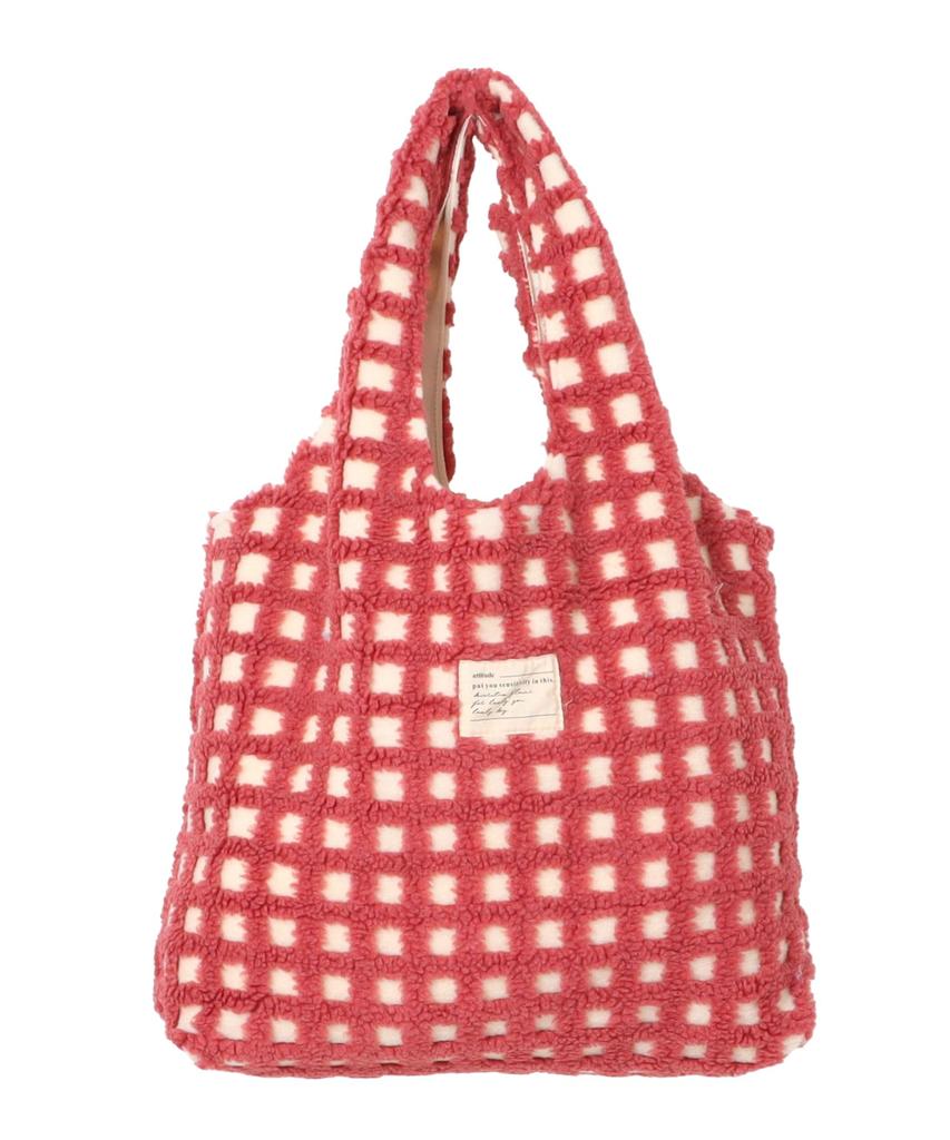 210NOUVE Checkered Boa Shoulder Bag, Red, Large Capacity Tote Bag [55K210G352-13]