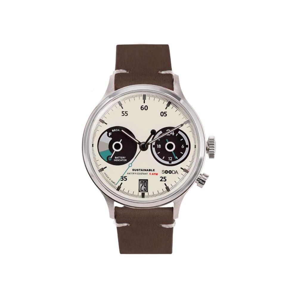 TACS SOODA TS2302B Women's and Men's Solar Watch with Leather Strap, 38mm, Made In Japan, Authentic, Brown