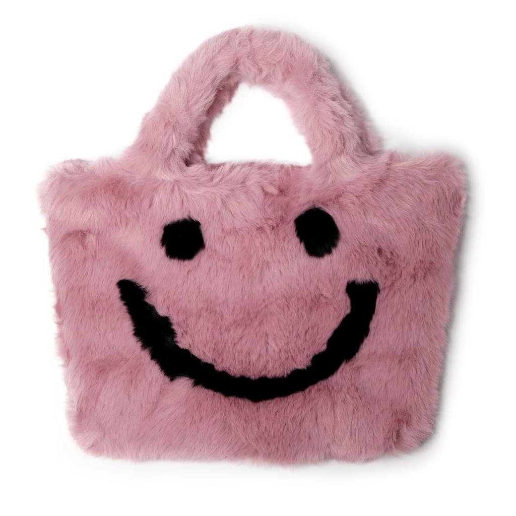 [Smiley X 2] Women's Fur Tote BagShoulder Bag with Smiley Smiley Design, Fluffy, 2-Way Bag, Mother's Bag, Stylish, Cute, FallWinter Fluffy Bag (Pink)