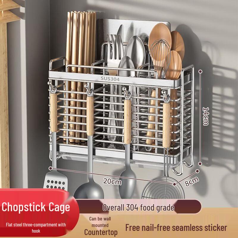 Zhishi Stainless Steel Wall-Mounted Kitchen Chopstick Holder