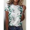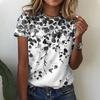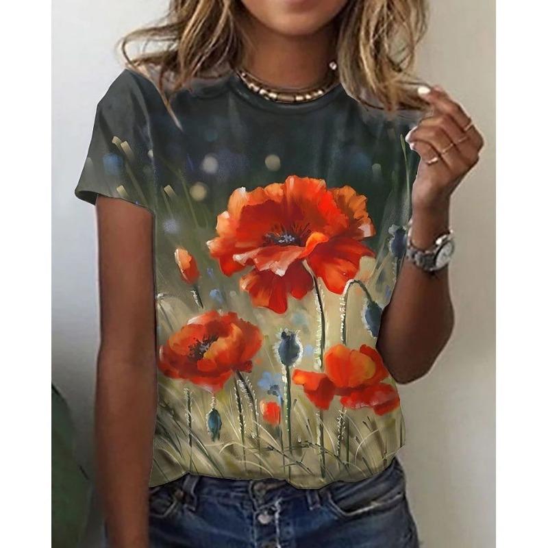 Women's Poppy Flower Print T-Shirt - Oil Painting Style Short Sleeve Casual Top