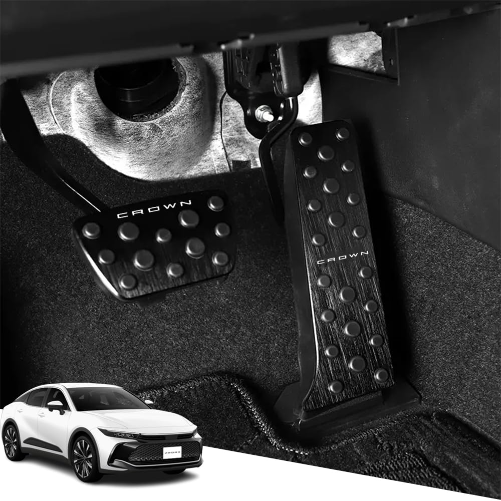These aluminum pedal covers are compatible with the new Toyota Crown Crossover, Crown, and Crown Sport. The anodized aluminum adds a touch of luxury to your vehicle. The pedal tread is made of non-slip rubber, making it perfect for rainy days. Installation is simple: simply insert the covers into the pedals and you're ready to go.