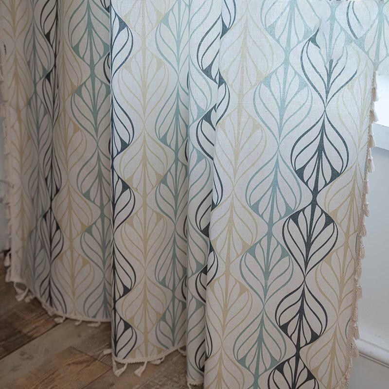 Jingga Cotton Linen Printed Semi-Blackout Tassel Curtain