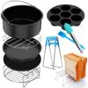 10Pc Air Fryer Accessories Set Food-grade Air Fryer Accessories with Cake Basket Pizza Pan Stainless Steel Skewer Rack Oil Brush
