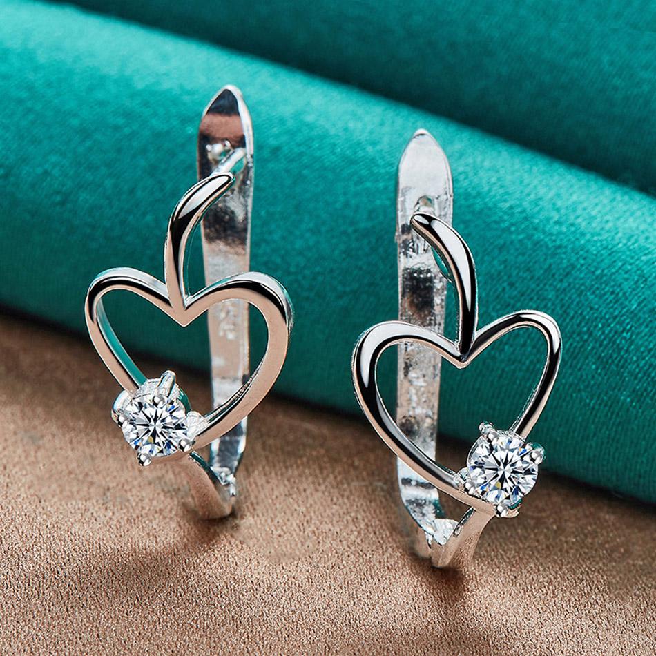Silver Love Heart Zircon Earrings For Women Fashion Charm Jewelry