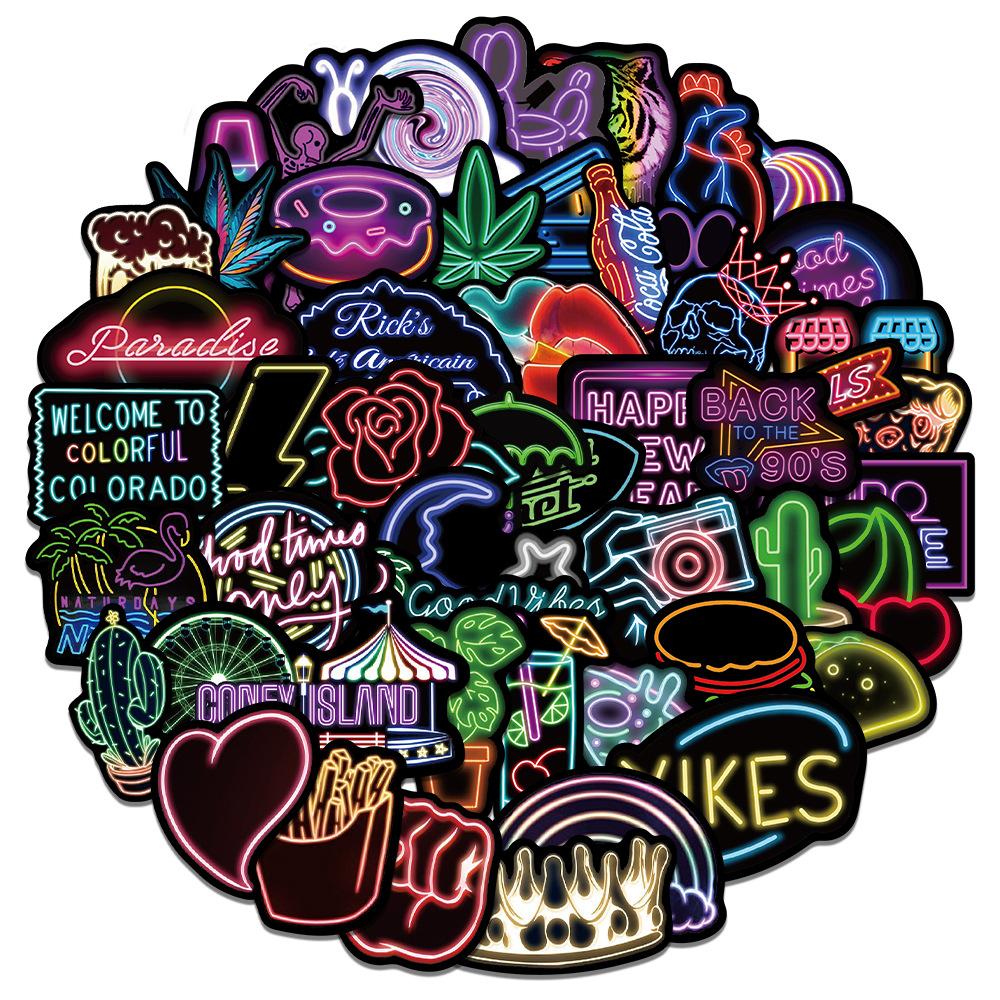 50Pcs Neon Light Cartoon Graffiti Stickers DIY Phone Guitar Laptop Notebook Suitcase Cup Waterproof Sticker Decals
