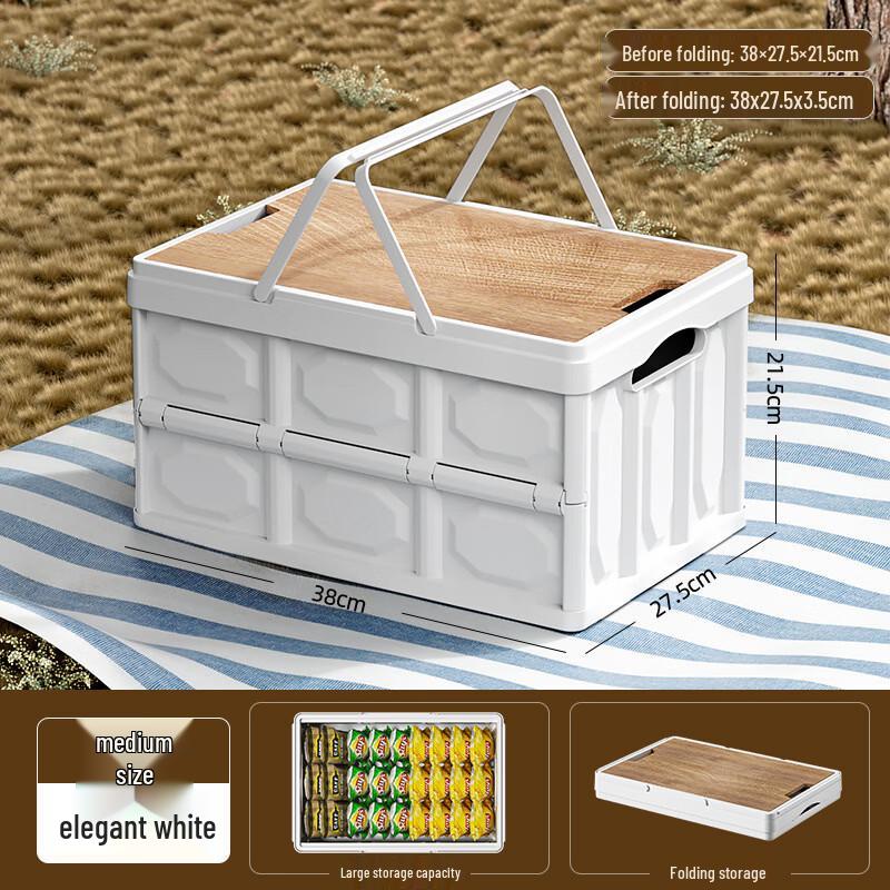 Floral Outdoor Folding Camping Storage Box with Wooden Lid