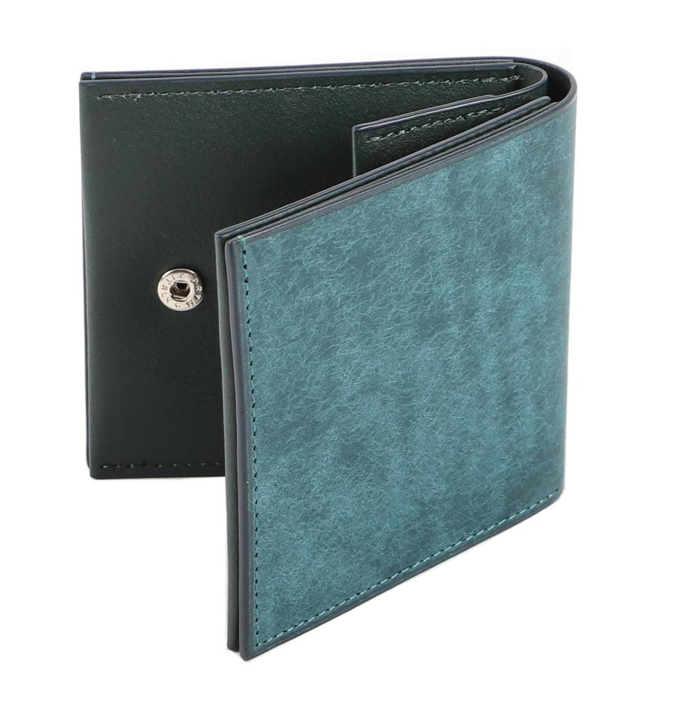 Lemma Trikiti Pueblo Wallet, a Compact, Thin, and Petrolio Leather Bifold Wallet for Men and Women.